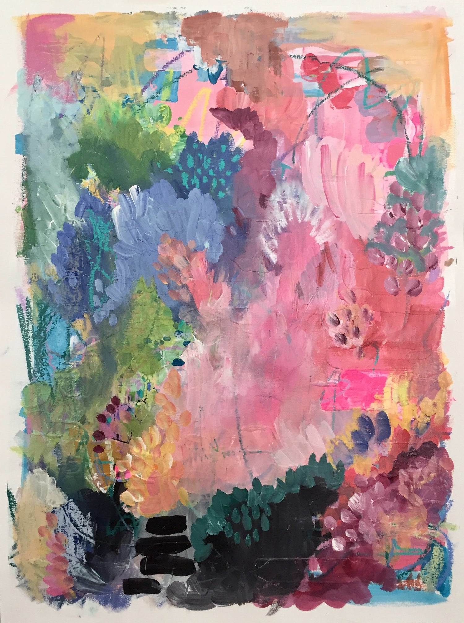 untitled- 24" x 18", ACRYLIC & OIL PASTELS ON PAPER-